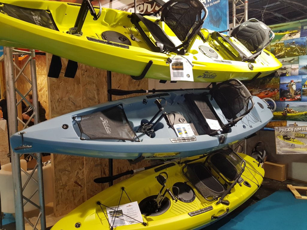 Chez Hobie, l’entrée de gamme est le Passport, sympa mais peu équipé pour la pêche. Ensuite on trouve le Compass qui commence à être équipé avec des rails pour fixer des accessoires, un puits de sonde et le système Mirage Drive 180. L’outback propose en plus un puit de sonde rétractable, une barre pour fixer des accessoires, un peu plus lourd certes mais c’est clairement un super kayak pensé pour la pêche. Le haut de gamme est incarné par le Pro Angler, véritable machine de guerre taillée pour la mer, mais vraiment trop lourd pour pêcher en rivière.