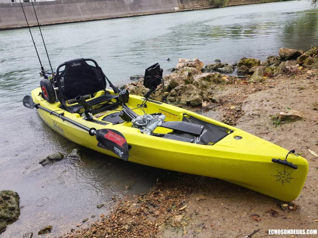 Ce kayak est relativement léger par rapport à ses grands frères Outback et Pro Angler. Néanmoins quand vous ajoutez un sondeur, une batterie plomb et votre matériel de pêche vous n’arrivez clairement pas à le porter tout seul. La mise à l’eau doit se faire dans des bonnes conditions avec si possible une rampe.