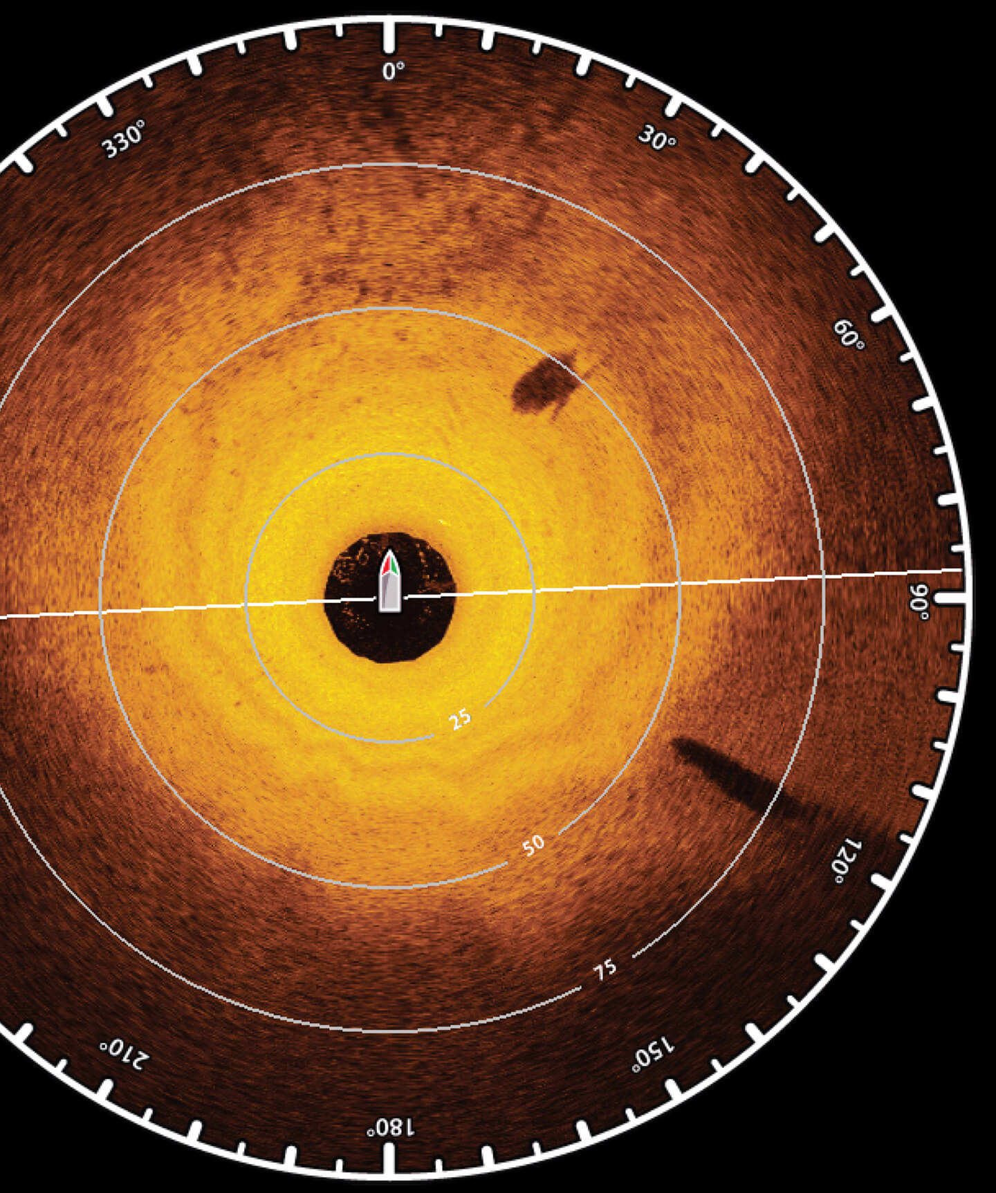 Son principal intérêt est de fournir une vision à 360° de ce qui se passe autour du bateau. Les structures sont parfaitement identifiables, vous voyez également la position des poissons. Finalement cette technologie se comporte comme si vous aviez un bateau à fond de verre.