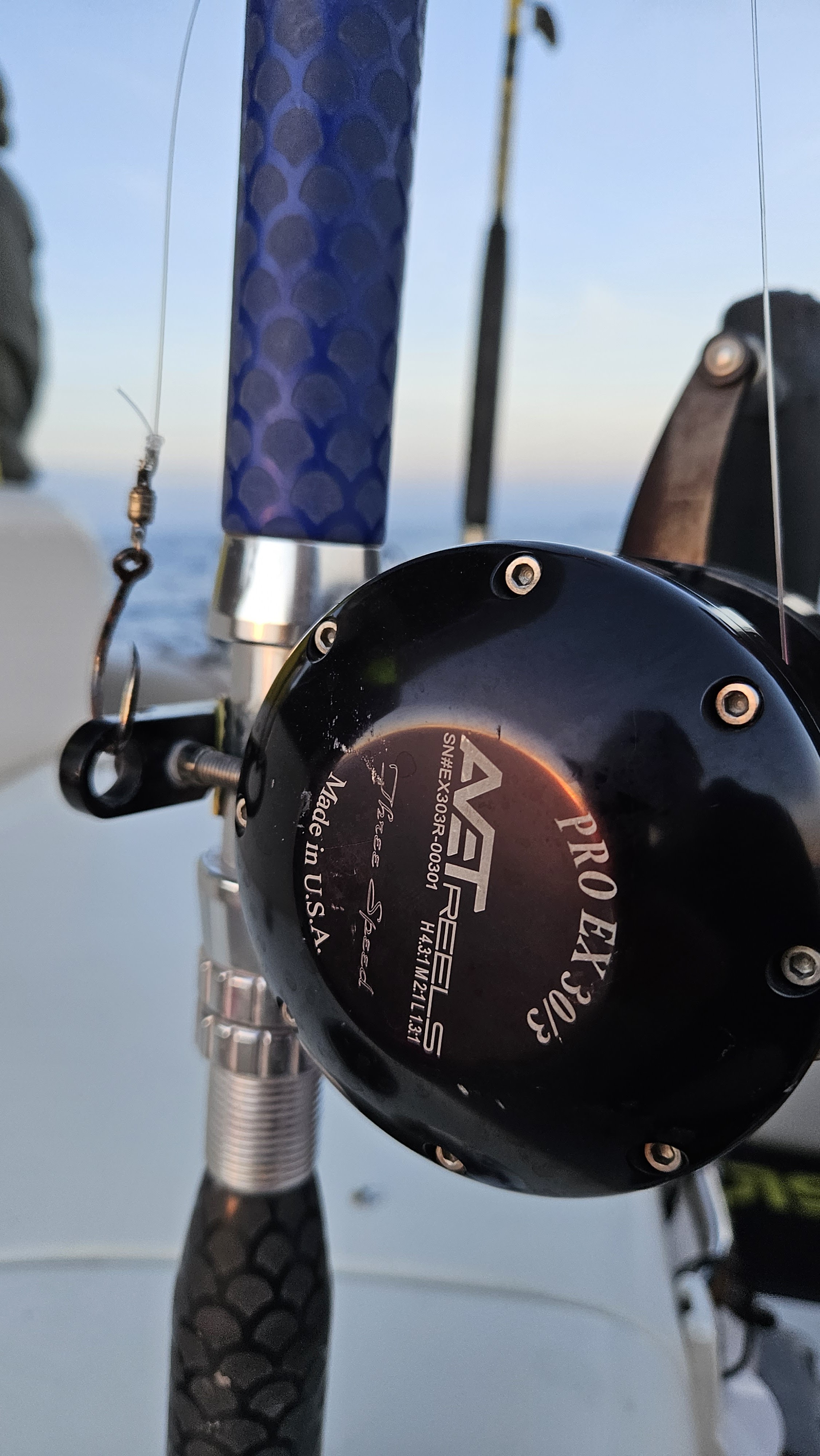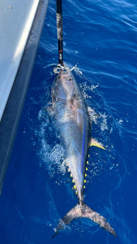 A 1h de l’étale de haute mer, un thon est détecté sur la PS31, il monte dans le broumé, le bouchon de la ligne plombée léger à 20g s’enfonce. Ce sera un thon estimé à 18kgs qui rejoindra le bord du bateau après cinq bonnes minutes de combat. Ce dernier est décroché directement dans l’eau, il est d’ailleurs interdit de le remonter. Les thons sont des poissons rapides qui ont besoin d’oxygène. Le sortir de son élément le condamnera probablement.